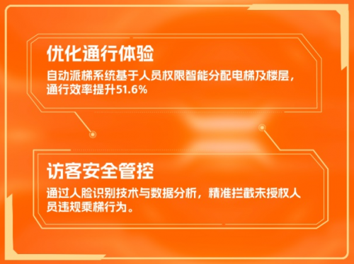 研祥智慧园区为其创新提供智慧梯控系统,将手动选梯升级为自动派梯模式,并打通出入口通道门禁与梯控系统,在高峰期结合人流数据及人员权限,实现自动分配电梯,大大减少通行等待时间。